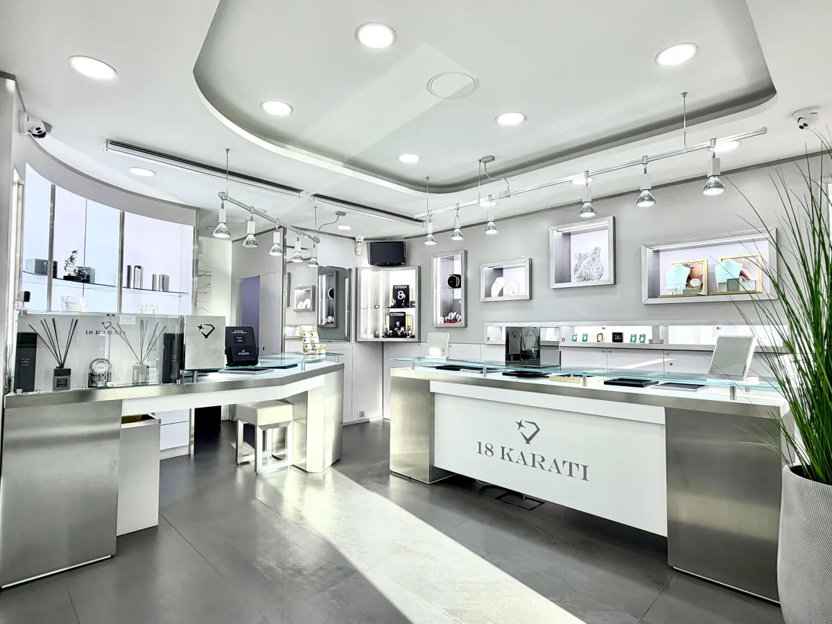 Da 18 Karati troverai un'ampia collezione di gioielli in oro, argento, diamanti e pietre preziose. La nostra selezione include anelli, collane, bracciali, orecchini e orologi con design che spaziano dai classici intramontabili alle creazioni più moderne e personalizzabili. Siamo anche specializzati in fedi nuziali e offriamo una consulenza gratuita per aiutarti a scegliere l'anello della tua vita (clicca qui per maggiori informazioni e richiedere il tuo appuntamento).